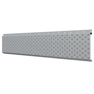 Линеарная потолочно-стеновая панель с ПЕРФОРАЦИЕЙ для вентиляции цвет RAL7004 Серый применяется в качестве софитов для подшивы крыши, наружной и внутренней отделки потолков, стен, фронтонов фасада дома в Санкт-Петербурге.