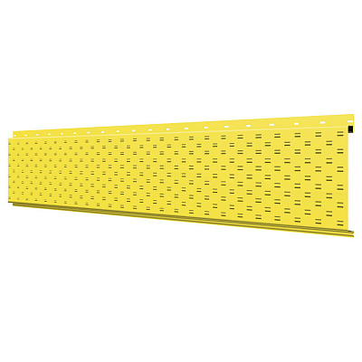 Линеарная потолочно-стеновая панель с ПЕРФОРАЦИЕЙ для вентиляции цвет RAL1018 Желтый применяется в качестве софитов для подшивы крыши, наружной и внутренней отделки потолков, стен, фронтонов фасада дома в Санкт-Петербурге.