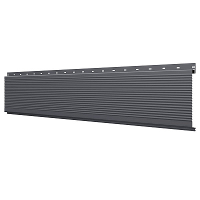 Линеарная потолочно-стеновая панель РИФЛЕНАЯ усиленная цвет RAL7024 Серый Графит применяется в качестве софитов для подшивы крыши, наружной и внутренней отделки потолков, стен, фронтонов фасада дома в Санкт-Петербурге.