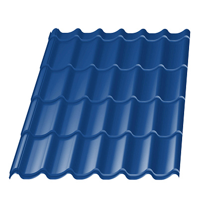 Металлическая черепица Меркурий цвет RAL 5002 Синий Сигнал имеет профиль внешне на кровле напоминающий классическую керамическую черепицу. Меркурий — это обновленный аналог профиля металлической черепицы для кровли крыши. Форма профиля имеет богатый внешний вид напоминающий небольшие набегающие волны. Лучшие показатели герметизации сделали профиль Меркурий гарантом стабильной и долговременной службы на крышах в Санкт-Петербурге. Данный профиль отличается не только своим качеством и практичностью, но и благородным внешним видом.
